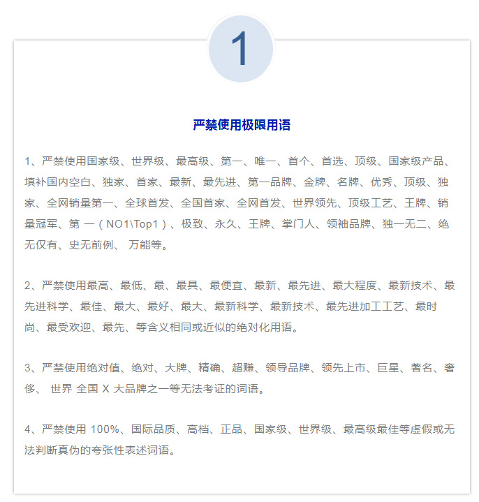 我們在制作網站、小程序的商品標題、頭圖、詳情頁、推文等商品信息的時候,除了制造賣點吸引消費者外,還需要注意避開一些廣告法禁止的宣傳用語,避免中招。